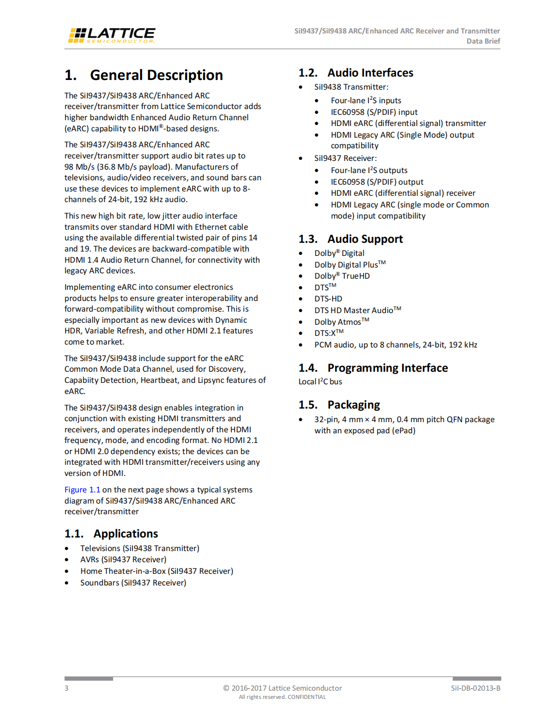 SII9437CNUC_萊迪思Lattice_HDMI 2.1 eARC發(fā)射器 接收器