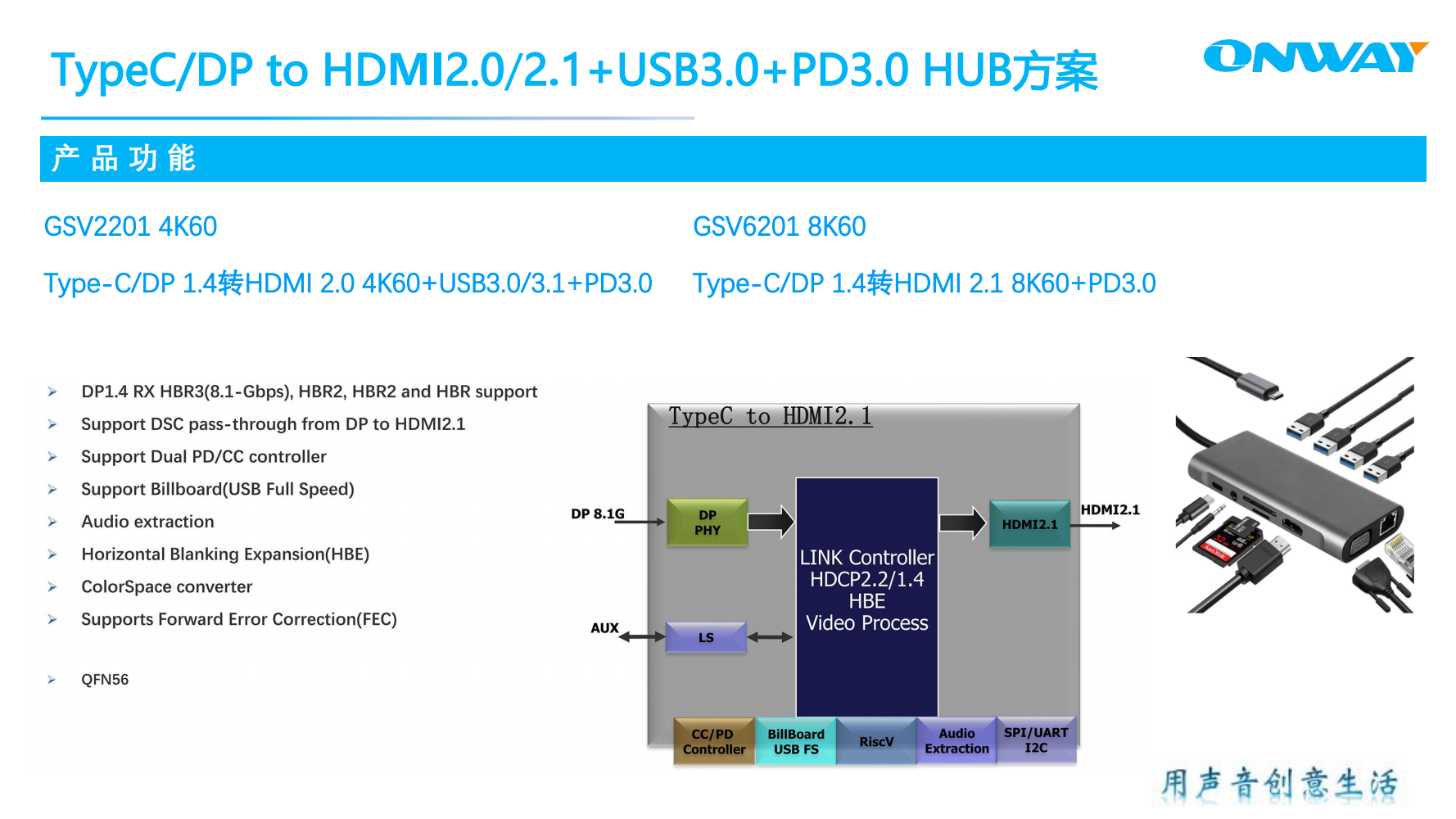 Type-C/DP 1.4轉(zhuǎn)HDMI 2.0/2.1 4K60/8K60+USB3.0/3.1+PD3.0