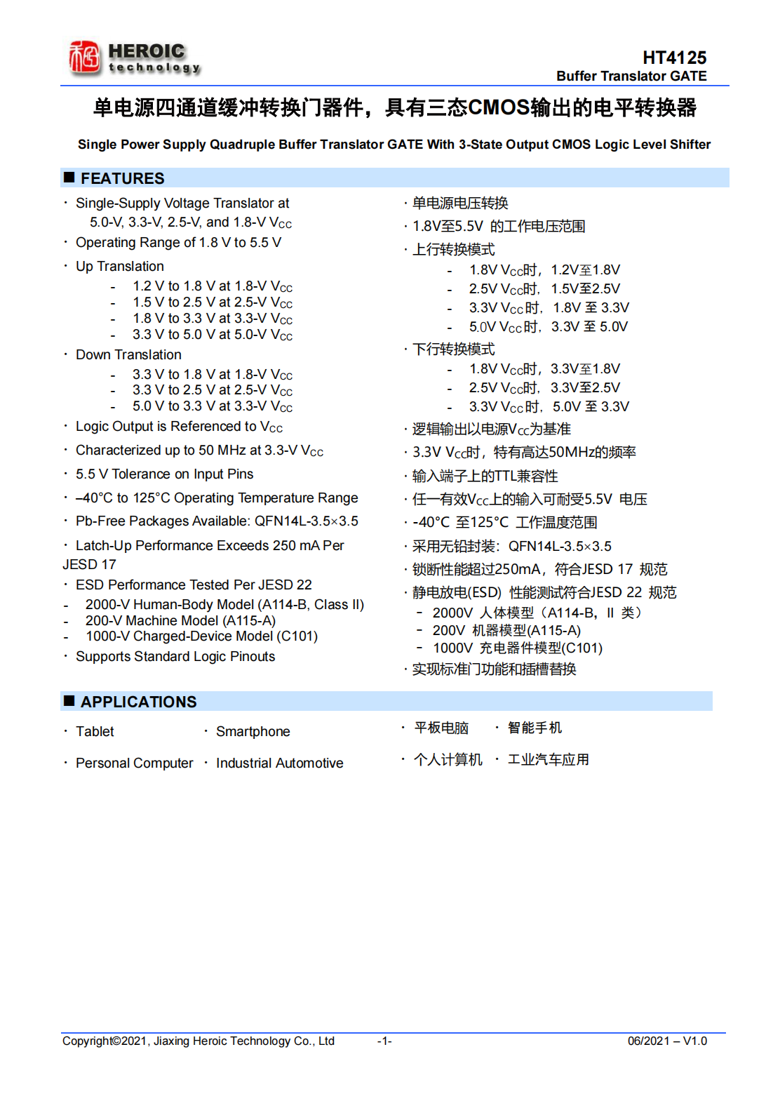 HT4125SQER_三態(tài)CMOS電平轉換器