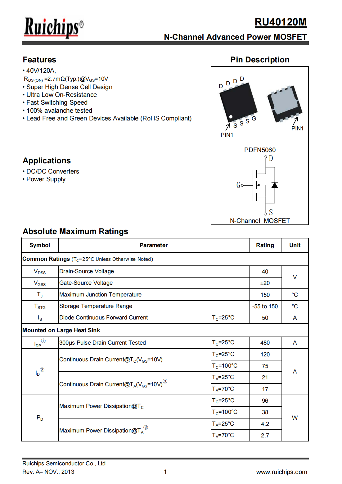 Ros(om)=2.7mQ(Typ.)@Ves=10V