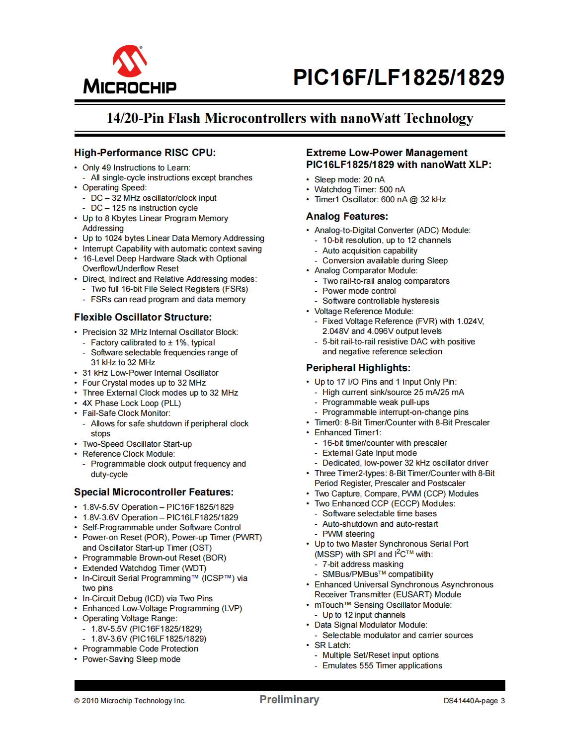 14/20-Pin Flash Microcontrollers with nanoWatt Technology