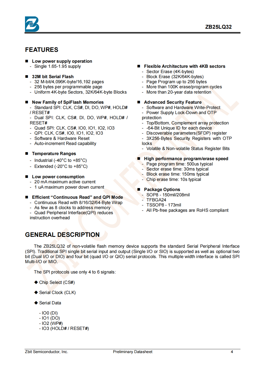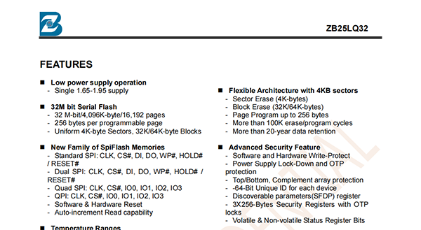 ZB25LQ32ATIG_1.8V 32M-BIT NOR FLASH
