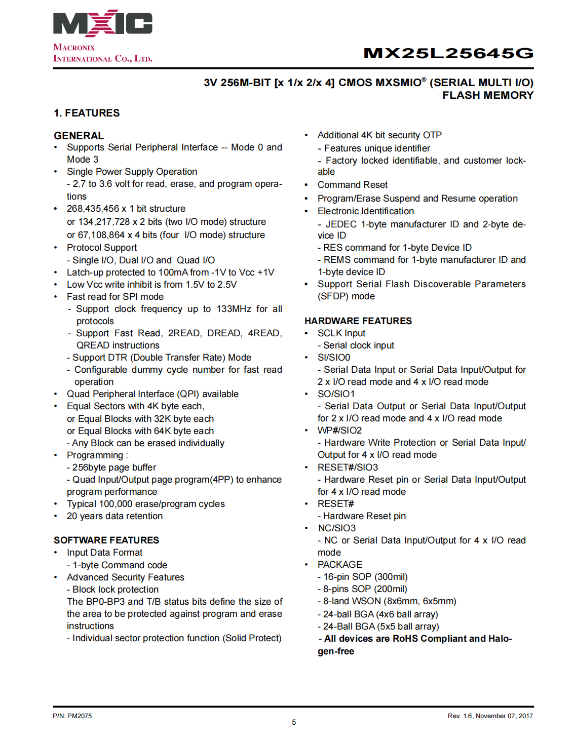3V, 256M-BIT [x 1/x 2/x 4] CMOS MXSMIO? (SERIAL MULTI I/O) FLASH MEMORY