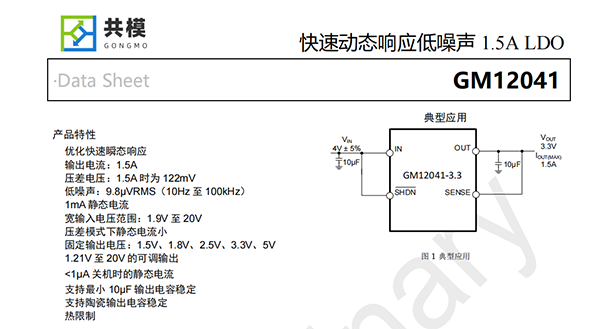 GM12041是一款低壓差穩(wěn)壓器,專為快速瞬態(tài)響應(yīng)而優(yōu)化。該裝置能夠提供1.5A的輸出電流,典型壓降為122mV。工作靜態(tài)電流為1mA,關(guān)機時降至1μA以下。壓差模式下靜態(tài)電流控制良好;與許多其他穩(wěn)壓器一樣,靜態(tài)電流在壓差模式下并沒有上升。除了快速瞬態(tài)響應(yīng)外,GM12041還具有非常低的輸出電壓噪聲,這使得該器件非常適合敏感的射頻電源應(yīng)用。輸出電壓范圍為1.21V至20V。