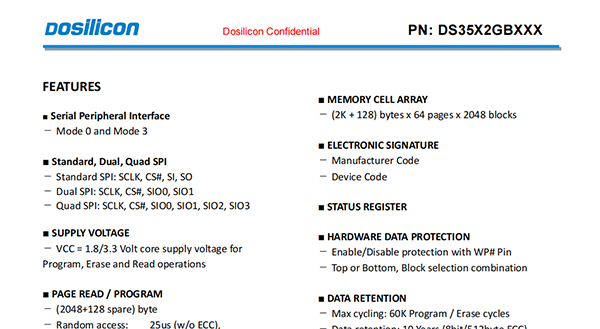DS35X2GBXXX is a 256Mx8bit with spare 16Mx8 bit capacity. The device is offered in 3.3/1.8 Vcc Power Supply, and with SPI interface.