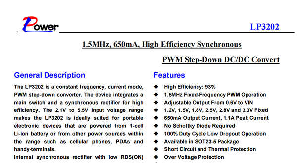 LP3202_1.5MHz, 650mA降壓型DC/DC