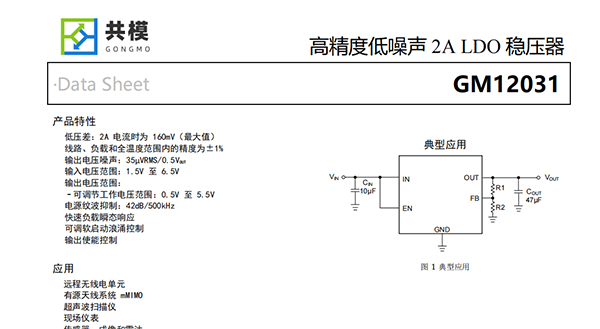 GM12031是一款低噪聲、低壓差線性穩(wěn)壓器(LDO),可提供2A輸出電流,最大壓降僅為160mV。該器件提供兩種輸出電壓范圍。GM12031的輸出電壓可通過外部電阻分壓器在0.5V至5.5V范圍內(nèi)進行調(diào)節(jié)。