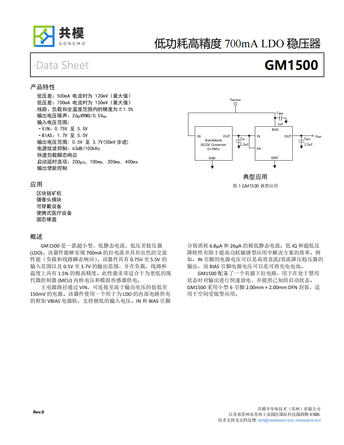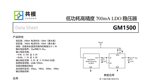 GM1500是一款超小型、低靜態(tài)電流、低壓差穩(wěn)壓器(LDO)。該器件能夠?qū)崿F(xiàn)700mA的輸出電流,具有0.75V至5.5V的輸入范圍以及0.5V至3.7V的輸出范圍,并在負載、線路和溫度上具有1.5%的極高精度。