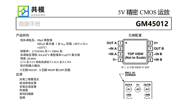 GM45012是雙路的軌到軌輸入和輸出,可單電源供電的運(yùn)算放大器。它具有非常低的失調(diào)電壓,低輸入電壓和電流噪聲,以及寬信號(hào)帶寬。