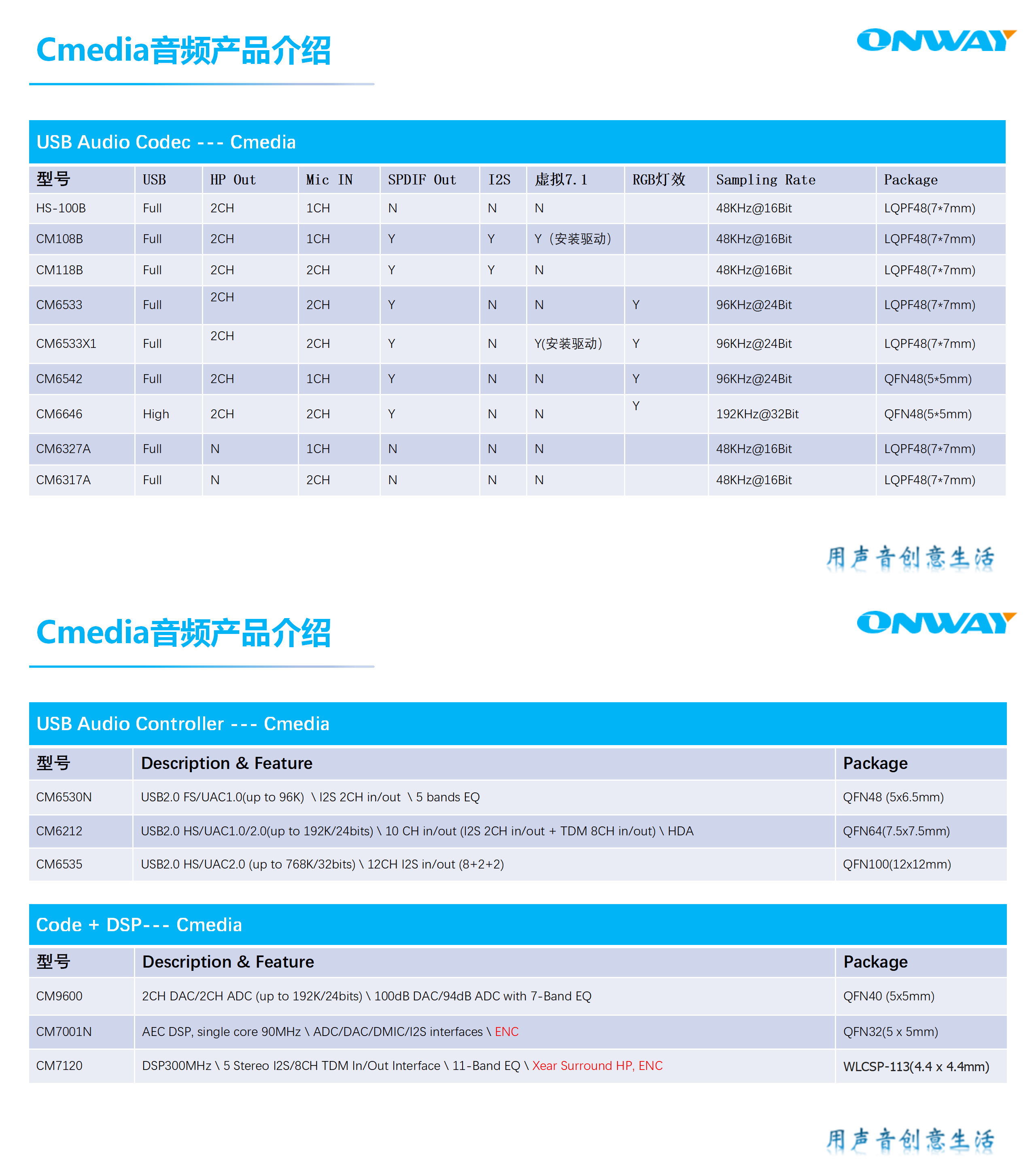 深圳市昂緯科技開發(fā)有限公司(ONWAY)代理 驊訊 Cmedia全系列產品,可提供技術支持及方案定制