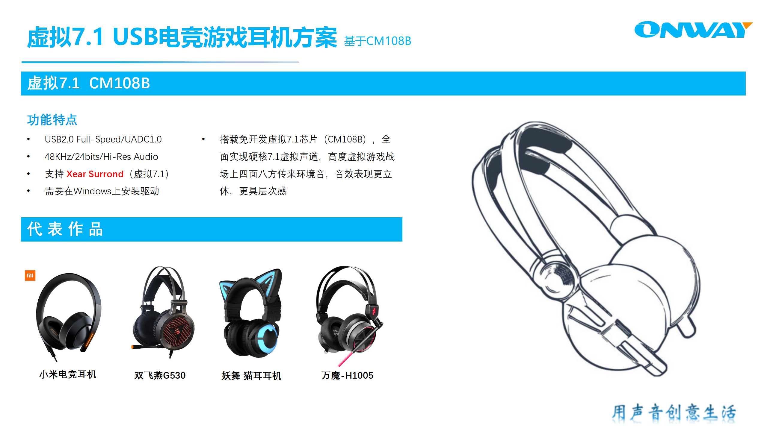 CM108B是一款高度集成的單芯片 USB 音頻解決方案,支持虛擬7.1,需安裝驅(qū)動(dòng)